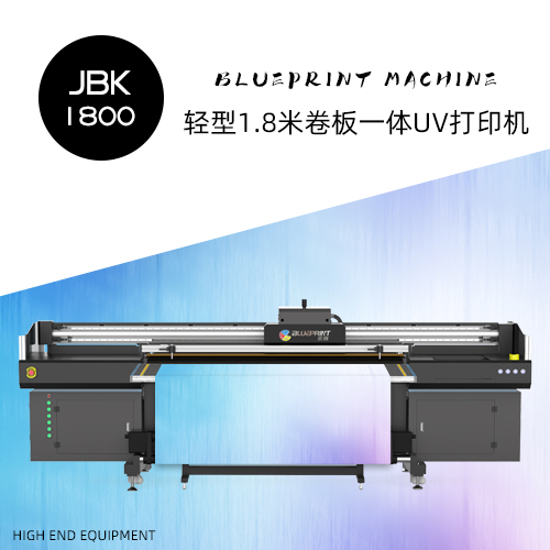 蓝图数码JBK-1800卷板一体uv打印机,1.8米打印宽幅,打印高度可达50cm,卷材板材都可以打印,适合各类创意个性化产品印刷生产,支持产品定制。